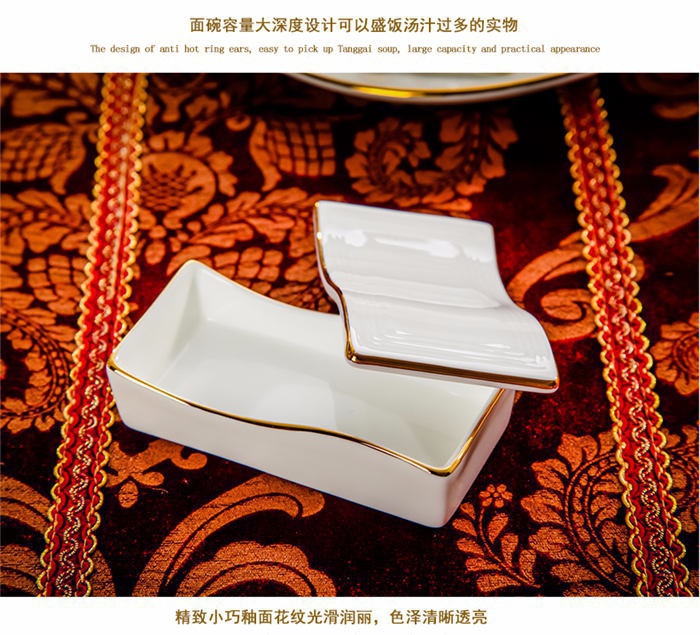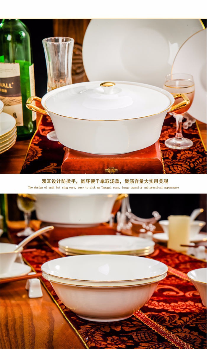 58頭頭金邊螺,一個湯煲,一個魚盤,一個十寸圓盤,一個飯勺,一個煙灰缸,一個牙簽筒,兩個面碗,十個4.5寸飯碗,十個五個五寸骨碟,十個八寸盤,十個調羹,十個筷子架。58頭頭金邊螺,一個湯煲,一個魚盤,一個十寸圓盤,一個飯勺,一個煙灰缸,一個牙簽筒,兩個面碗,十個4.5寸飯碗,十個五個五寸骨碟,十個八寸盤,十個調羹,十個筷子架。