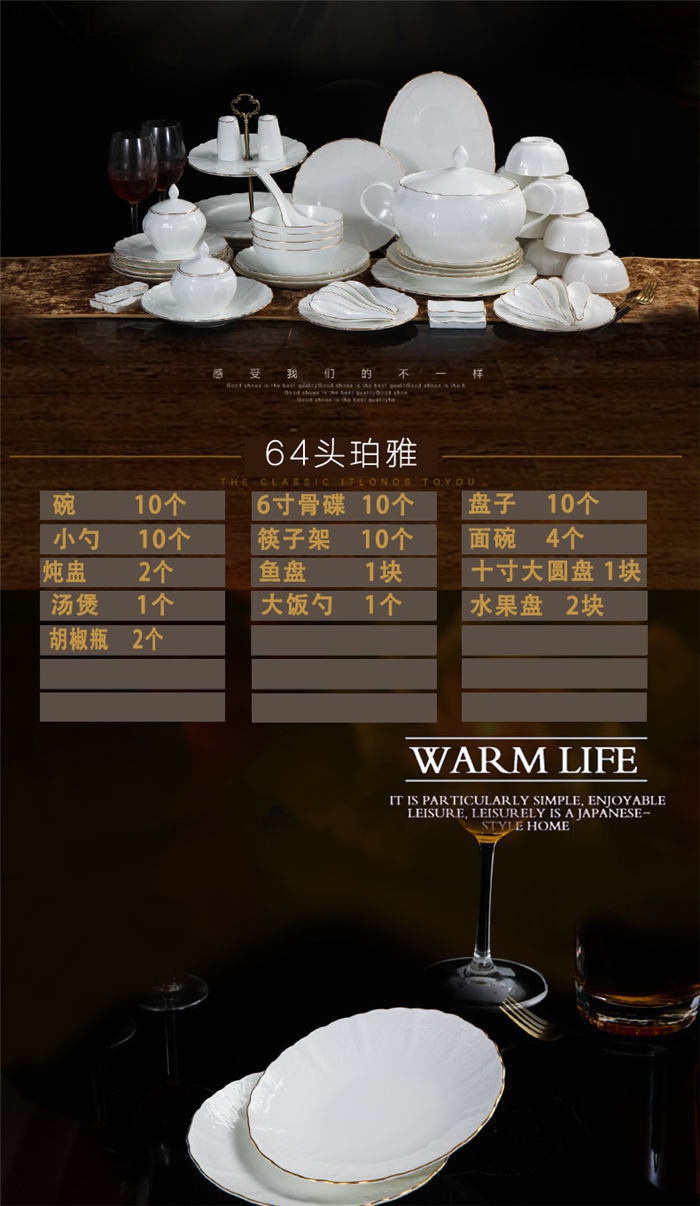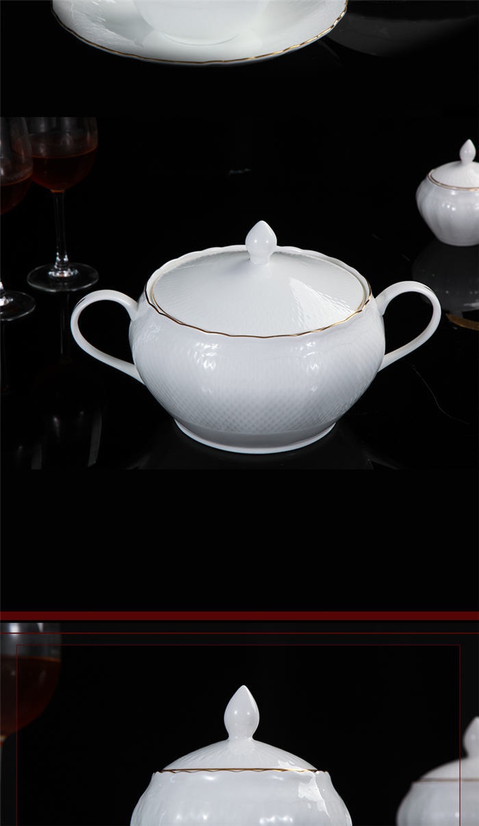 碗十個(gè),6寸骨盤(pán)十個(gè),盤(pán)子十個(gè),小勺十個(gè),筷子架十個(gè),面碗四個(gè),燉盅二個(gè),魚(yú)盤(pán)一塊,十寸大圓盤(pán)一塊,湯煲一個(gè),大飯勺一個(gè),果盤(pán)二塊,胡椒瓶二個(gè)。