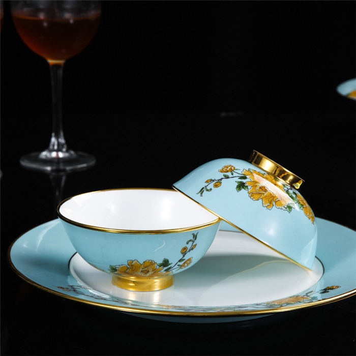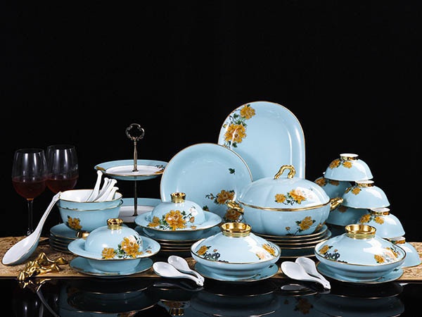 4.5寸碗10個,小湯勺10個,筷子架10個,骨碟10個,湯煲1個,大湯勺1個,菜盤10個,大圓盤1個,魚盤1個,果盤1套,大合器2套,湯盅2套,面碗2個